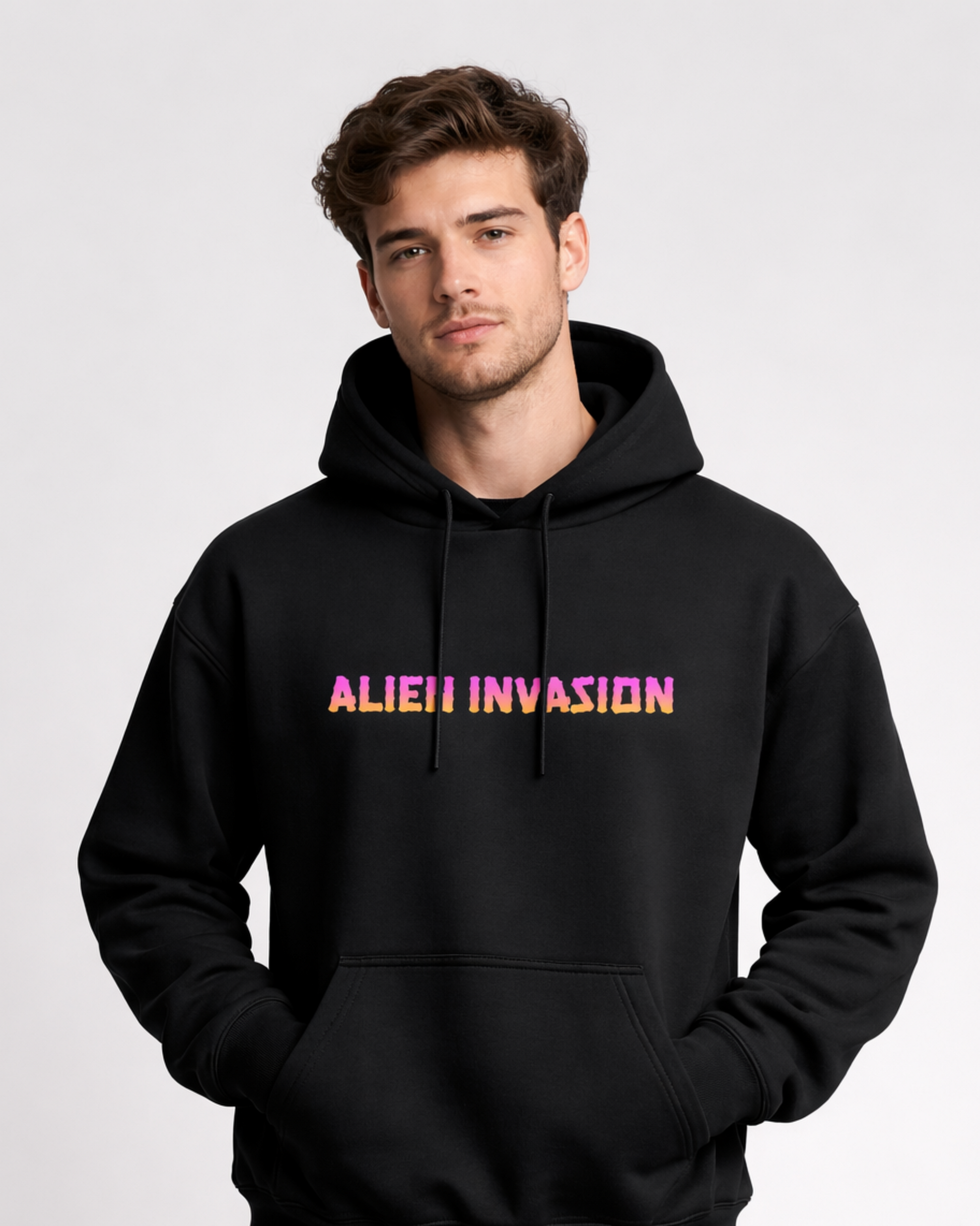 The ALIEN INVASION Black Hoodie is built for those who like their streetwear bold, comfortable, and unapologetically heavy.